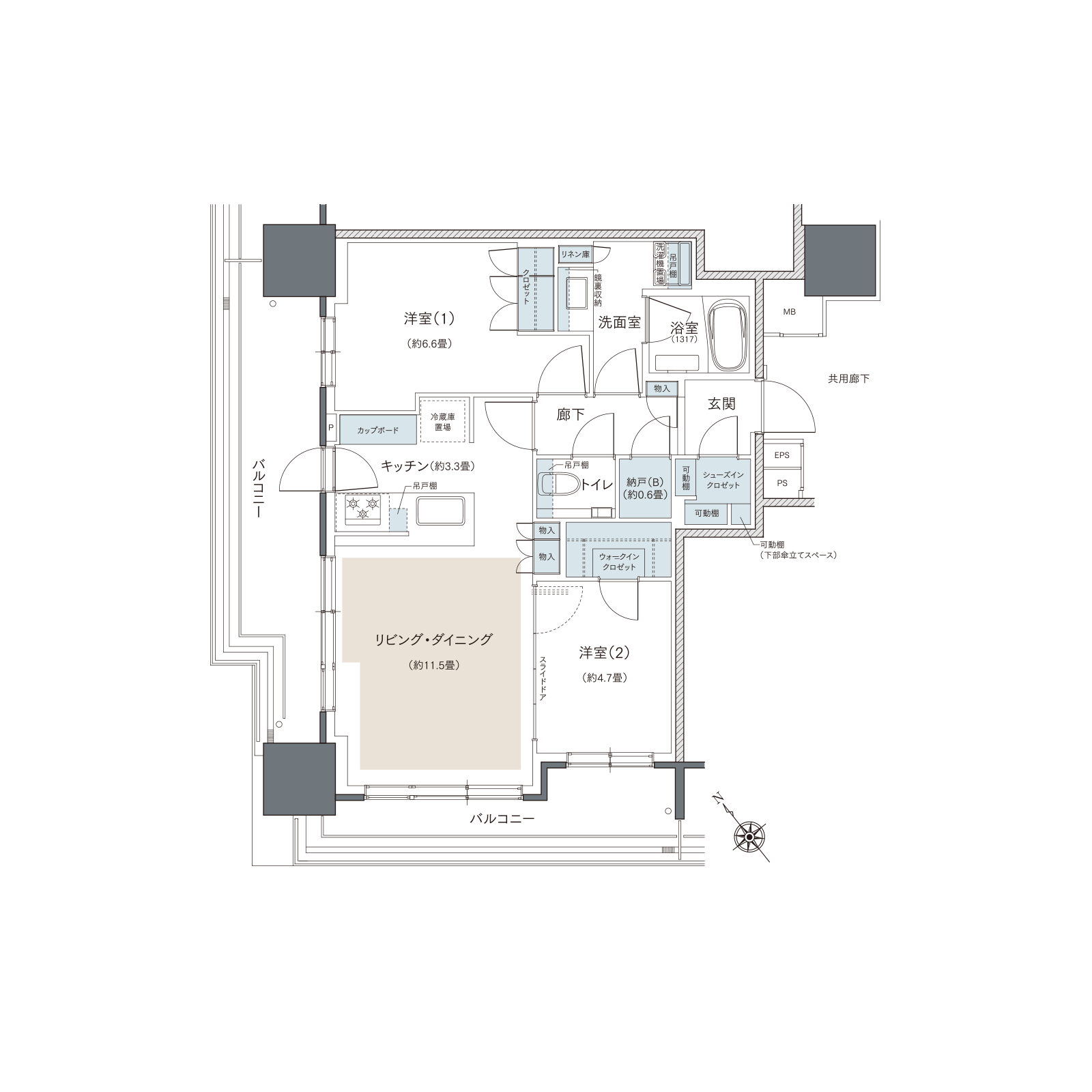 | 間取りタイプ | 2LDK+WIC+SIC+N |