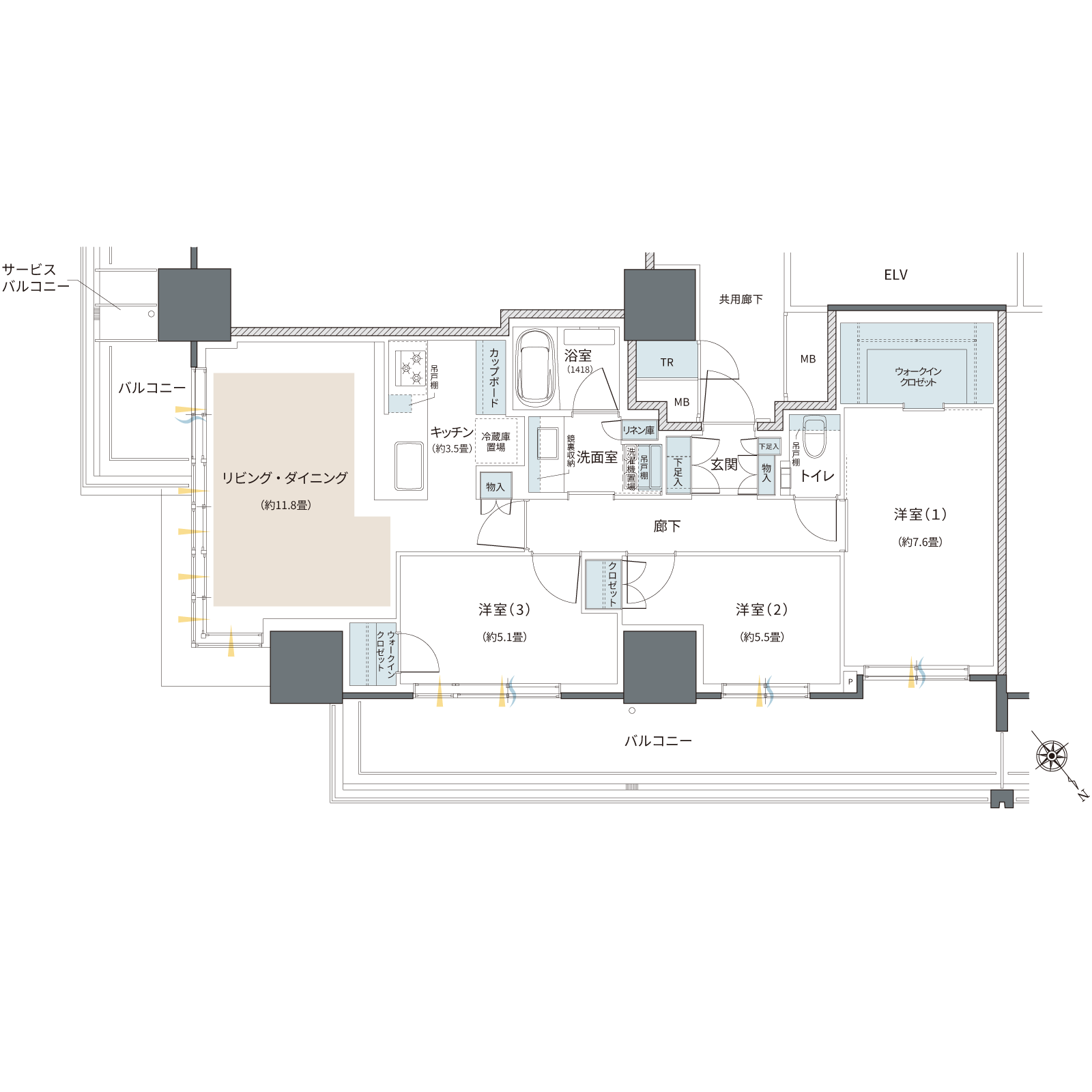 WIC:ウォークインクロゼット TR:トランクルーム